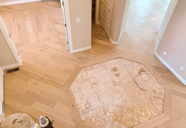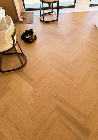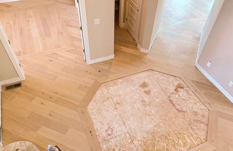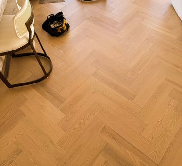 Hardwood floor installation with precision and style, ensuring durability and flawless finishes